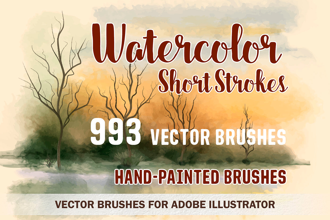 993 Realistic Watercolor Short Brush Strokes Vector Brushes for Adobe Illustrator.