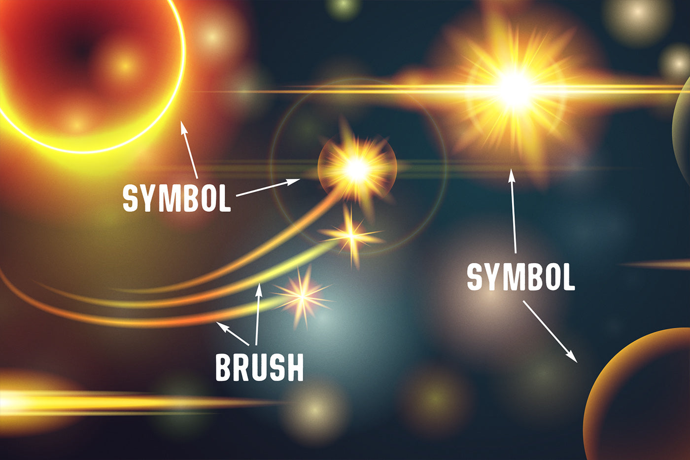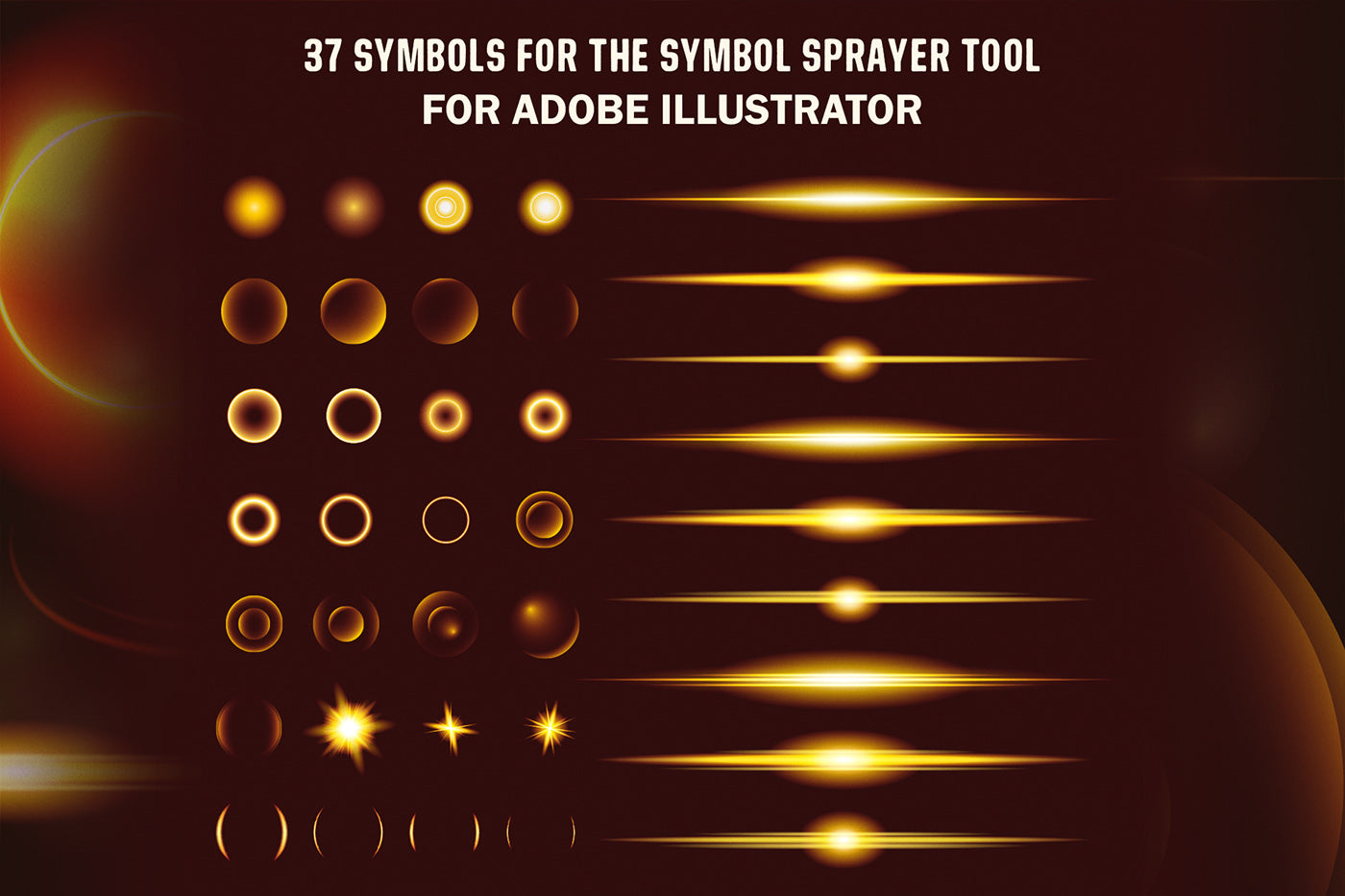 Collection of 43 Light Symbols and Brushes for Adobe Illustrator.