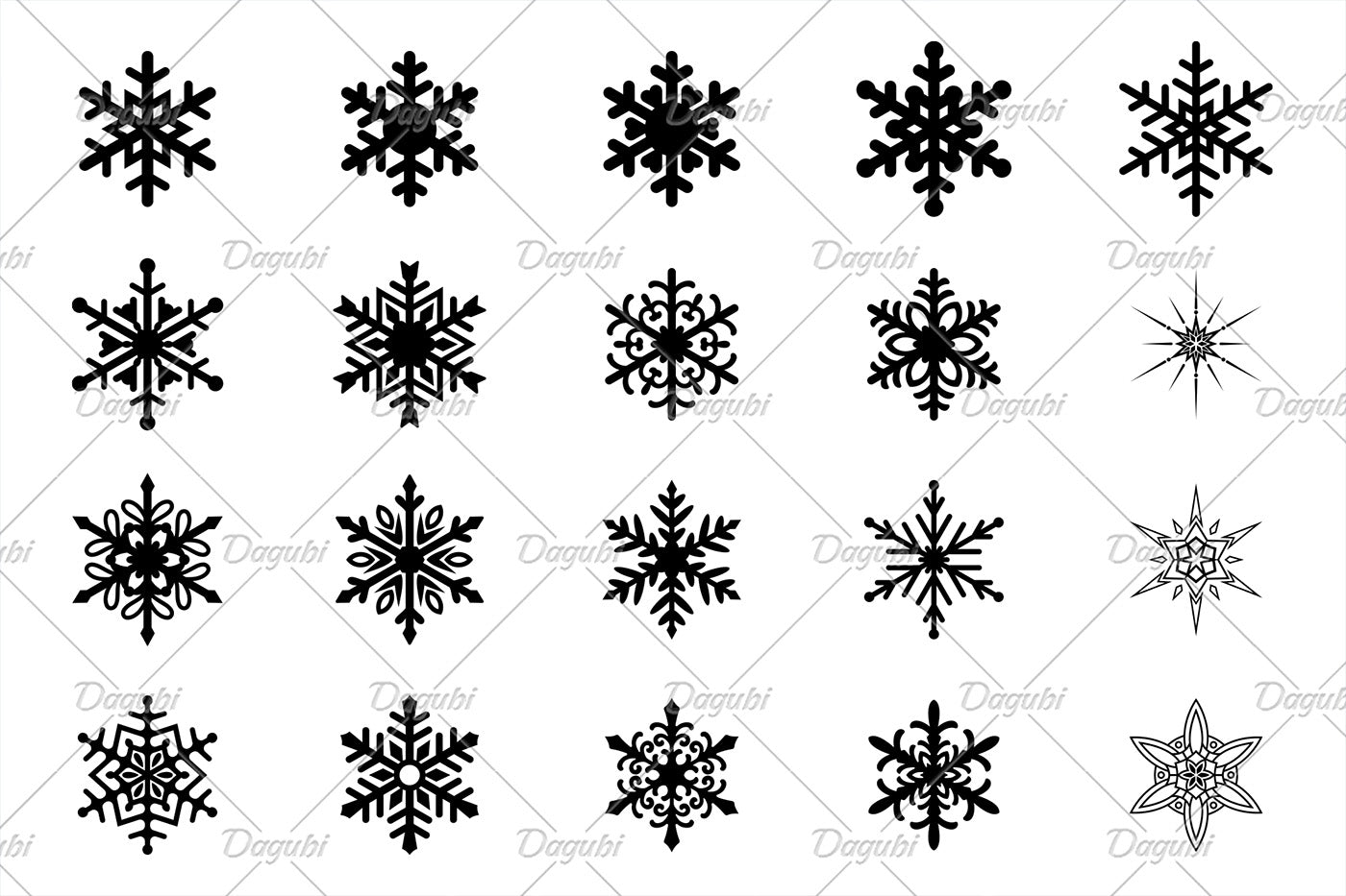 Collection of 20 Snowflakes Brushes for Adobe Illustrator.