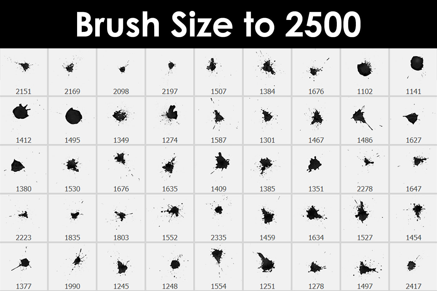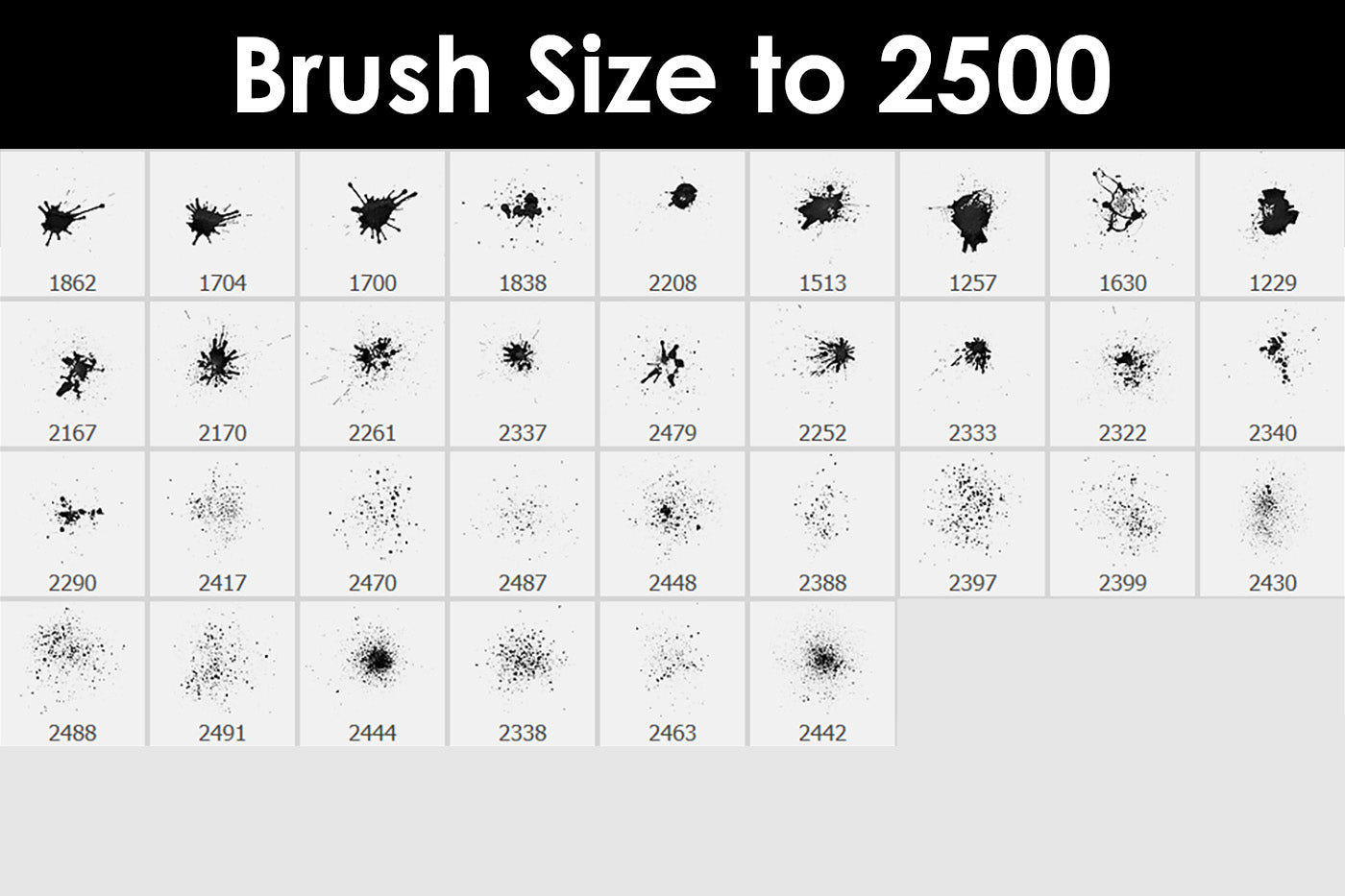 All brushes are stored in the size up to 2500 pixels.
